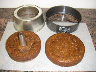 When done, remove from oven and cool on the counter for a few minutes. If your pan has a removable tube, run a table knife around the sides (if necessary), and lift out the tube for faster cooling. If tube portion cannot be removed, leave cake in the pan until completely cool. If you try to turn it over and remove cake while warm, cake may break apart. When cool, peel off parchment paper. Cake may now be eaten as is, simply dusted with powdered sugar, or iced with your favorite frosting (lemon or caramel are good). This style of cake "packs" well--great for lunch boxes, backpacks, picnics, or mailing to lucky friends.